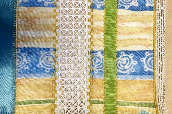 Vous pouvez poser un ruban de dentelle classiquement sur un bord ou en entredeux mais vous pouvez également utiliser les points décoratifs de votre machine à coudre.